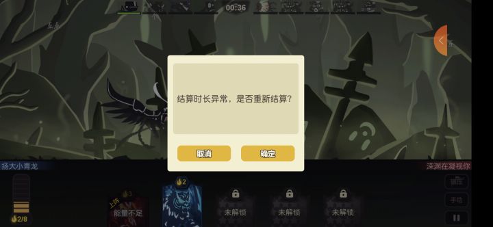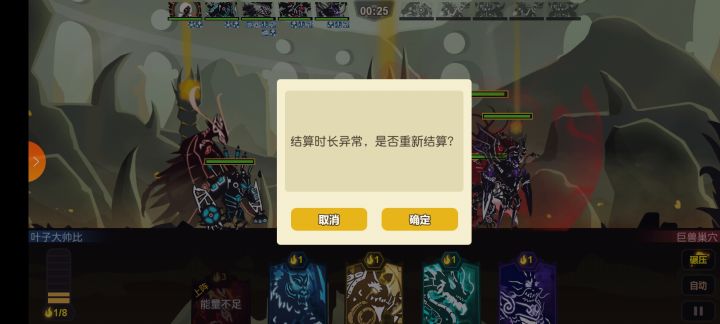 显示异常都一天了,怎么样都消不掉,关卡打完之后就显示这个显示重新结算。然后暴走也打不了。
