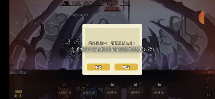 好不容易逆战力打过了,搁这疯狂不让我结算,一点取消就要重打,能不能修一修啊😅😅