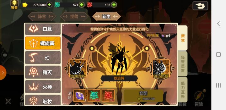 狂风•呼啸:翼皇攻击力降低或提高时,翼皇获得“呼啸”,每次攻击恢复体力85%的血量,“呼啸”不可清除,持续至翼皇攻击力恢复原数值