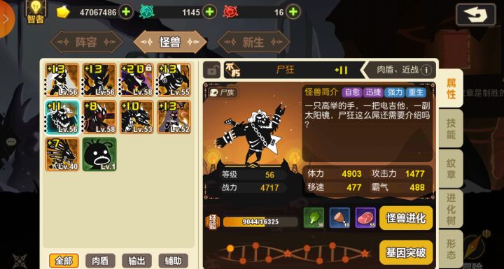 再生.尸狂:再生生效时,使获得尸族图鉴效果的友方怪兽恢复当前血量的5%(可升级到25%)