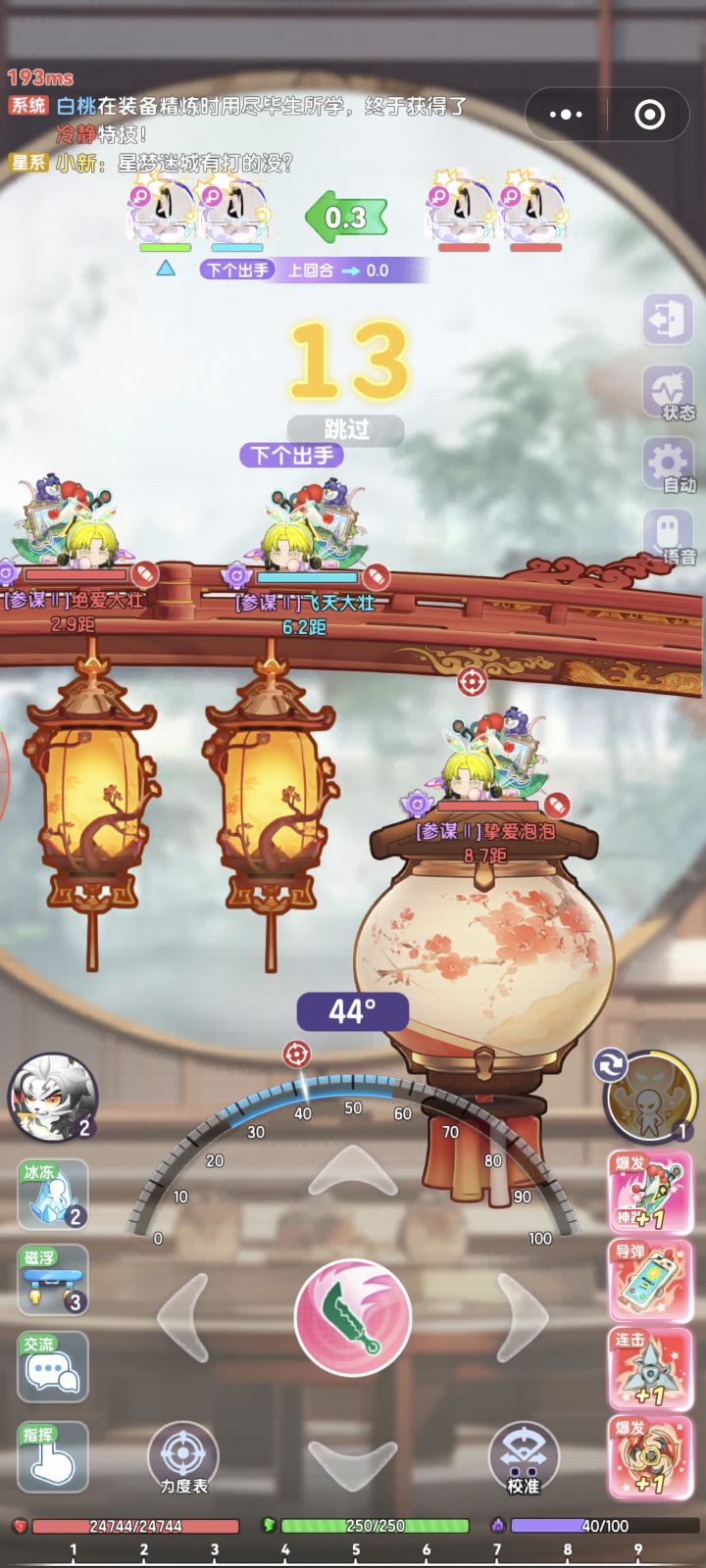 #弹星地图DIY大赛 uid:25570002377区服:弹弹星球古典星,缪斯星系地图uid:290002377地图名字:张灯结彩这张“张灯结彩”地图以中式节庆为核心,朱红廊柱挂满红灯笼,彩绸在檐角随风飘摆,地面铺着鎏金福字地毯。错落的亭台、悬挂的灯笼既是装饰,也为对战提供掩体,让玩家在喜庆氛围中体验攻防乐趣。
