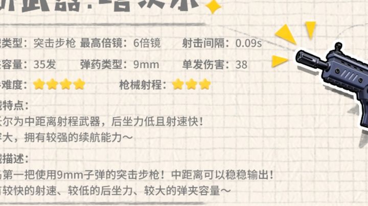 正式服ID:clukem塔沃尔 突击步枪 35发子弹 最高六倍镜 使用的是9mm子弹是第一把使用9mm子弹的突击步枪 良好的稳定性使其在开镜状态下,基本可以指哪打哪 但是塔沃尔腰射扩散大并不适合近距离作战 塔沃尔是一把擅长中距离作战的突击步枪 后坐力低且射速快还拥有比较强的续航能力 需要注意:塔沃尔无法安装「枪托」与「枪口」使用塔沃尔战斗时,一定要和敌方肠肠保持距离,开镜还击。0.09秒/发的射