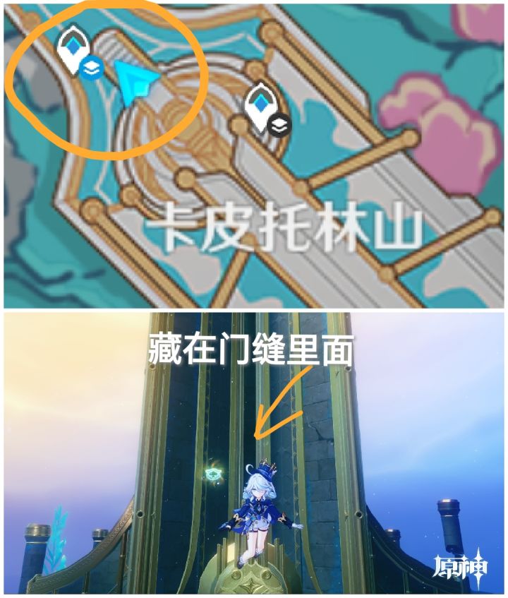 这个位置是真的意想不到哇!(具体看图二)更惊喜的是,看起来只能一人通行的门缝竟然还能转个身!!#聊聊我的游戏生活#一张图证明我的游戏水平#原神枫丹#原神#探索#米哈游