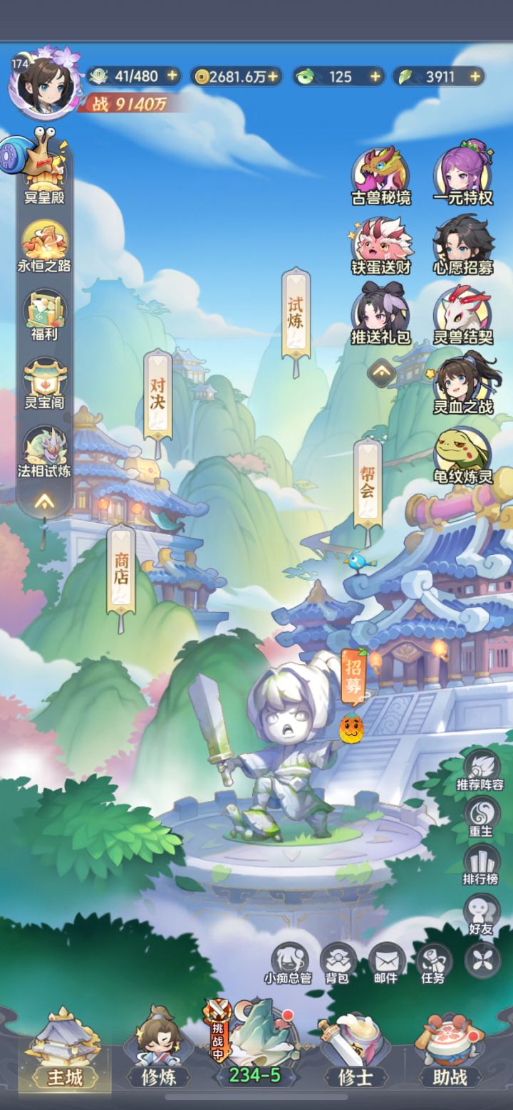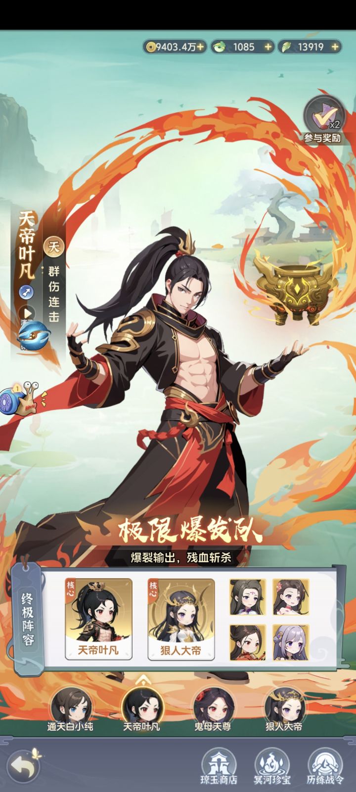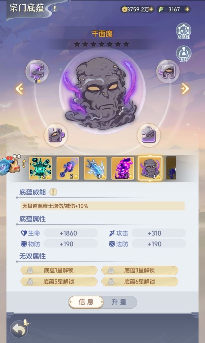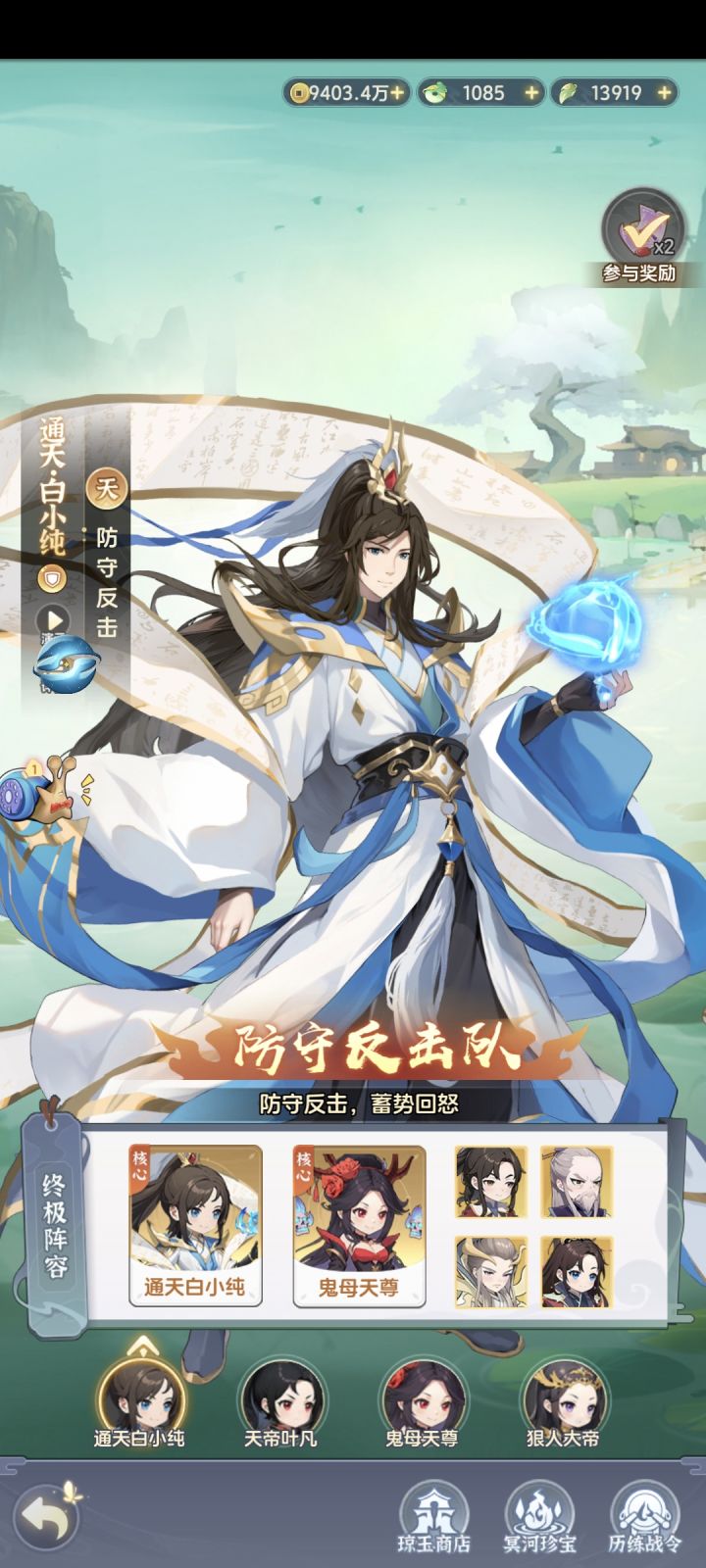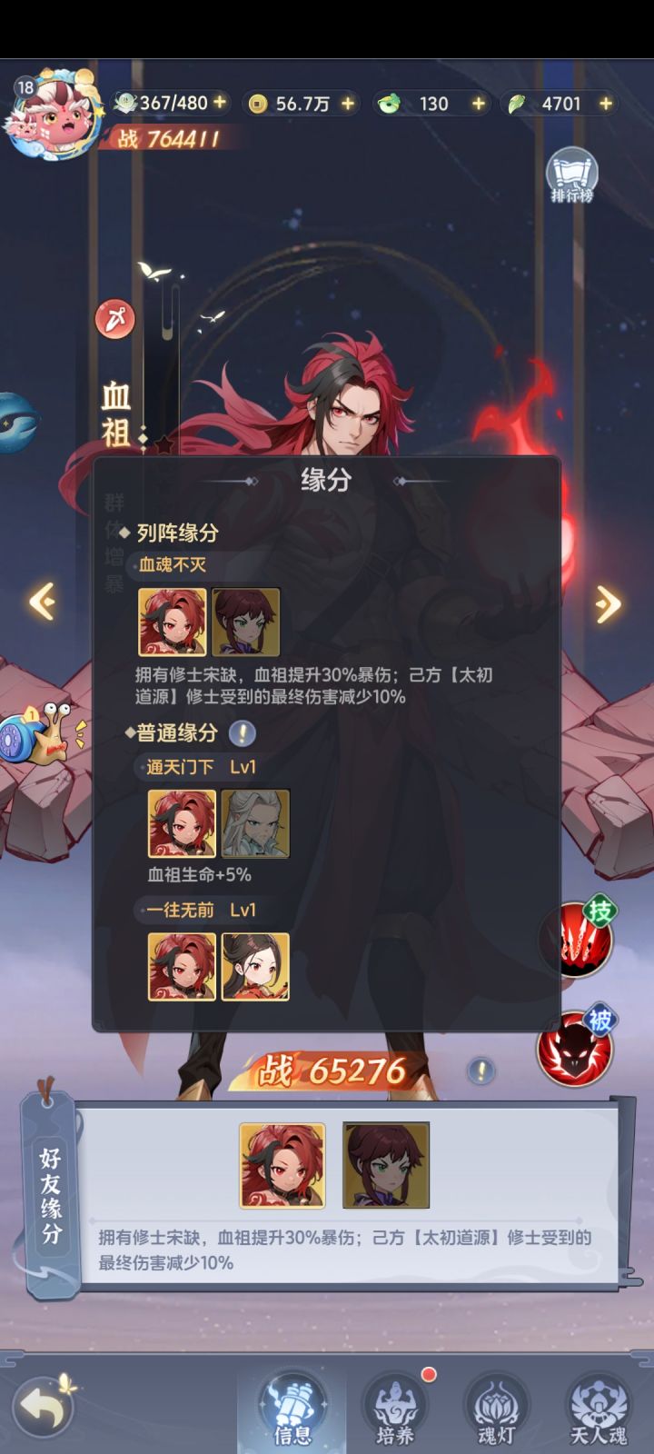 今天写这份攻略主要是跟大家推荐大天师这个角色,无论是打pve或者pvp或者刷活动都很好用3星放在后排的情况下保底两个大招,法宝带九州图的话有概率3个大招法宝稳一点还是血火灯,我这边是因为要打王兽所以玩的送死流没有一个氪金角色,凑齐很容易,后面肝出少祖白小纯后就可以把少年的替换掉,同时激活红拂的缘分#一念永恒少年追梦 #一念永恒少年追梦攻略