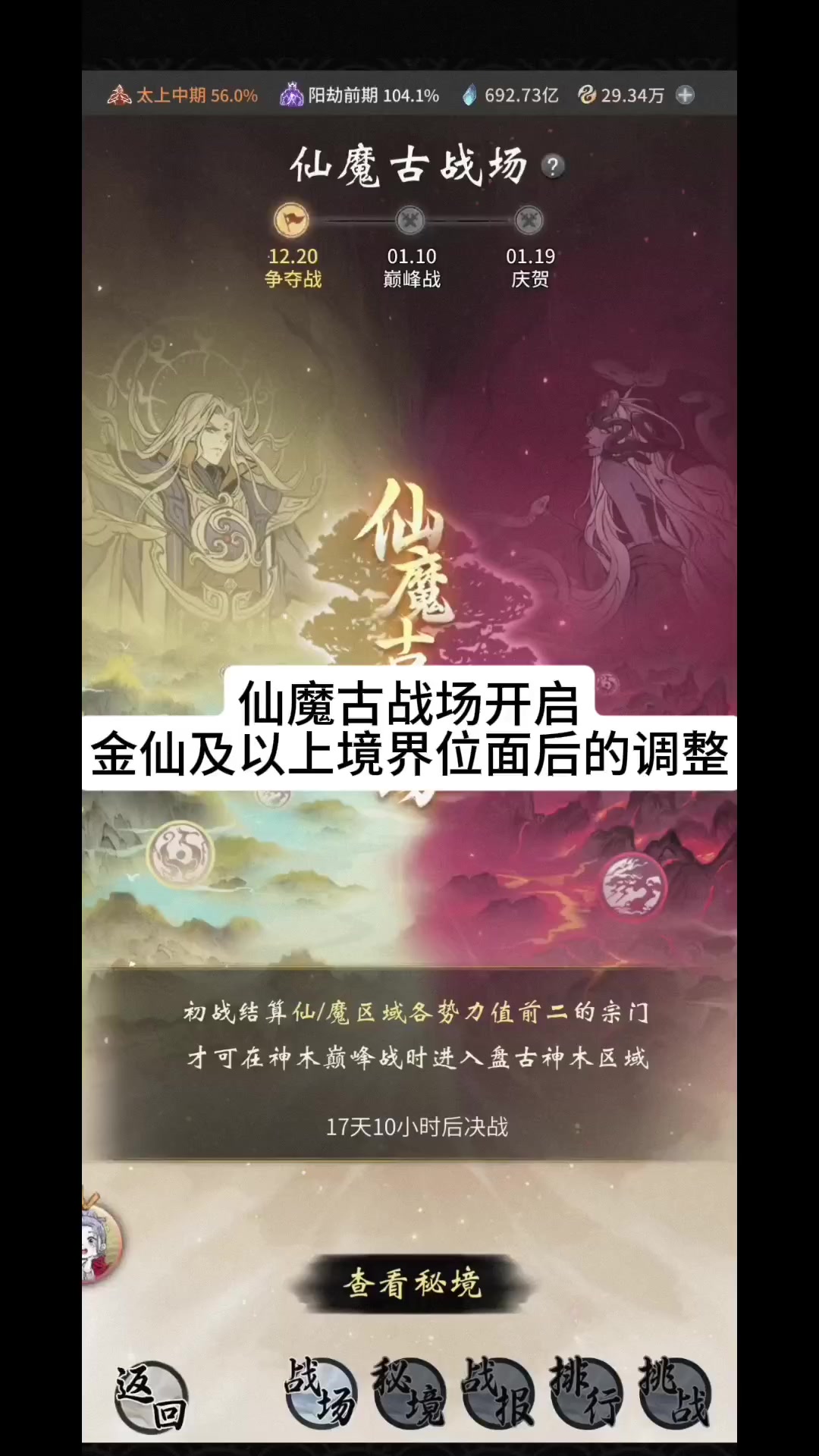 仙魔古战场今天下放金仙境界,玩法内容提前预览