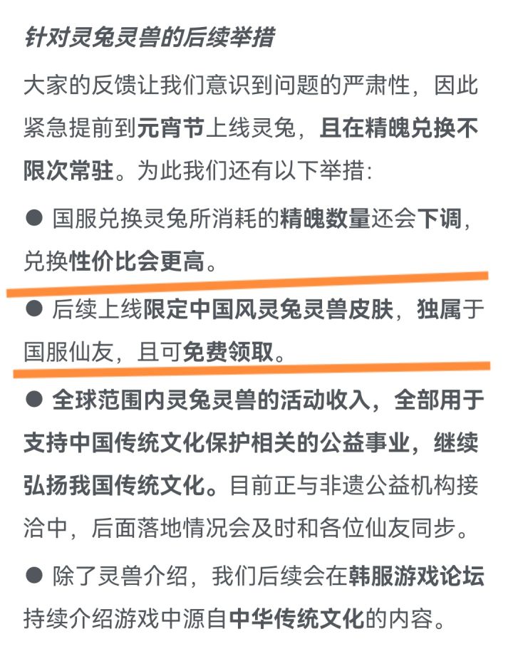 第一图:你这不是宰冤种吗,还九折你以为你多高尚你要么就免费送补偿这件事第二图:你还公平你处理方式一样,只会恶心玩家,还国服最先上线确实只是境界,毕竟开服比韩服早很多肯定先上,你活动只字不提不就是明年还一样吗第三图:你都成普通灵兽了为什么还挂活动去当奖励你不就是为了宰国服玩家了,还有只知道国服升级才变玉兔,韩服就是玉兔,你解释就只有图片解释说不是玉兔,众所周知手机翻译都是不准确的,上限定灵兔皮肤