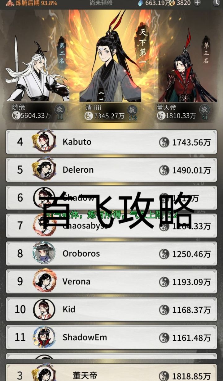 每天都要和最高修为的保持同个大境界不然抢不过,差个小境界的话就很可能运气问题。提前准备进区,最快完成筑基。聚灵阵和镇妖塔,主线都可提修为。关于修为的氪金都拉满。功法灵气修为拉满,筑基紫色丹先不吃金色优先吃算好修为。到结丹吃金色紫色暂时不吃。辅修突破境界可以刷新天机阁,天机阁机缘刷新2-3次。宝藏阁刷新6+次,修为秘药和修为古宝都买。秘境选择和机缘使用就不说了太复杂了。有需要私信吧。刷