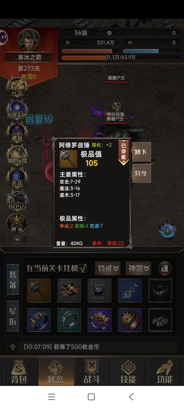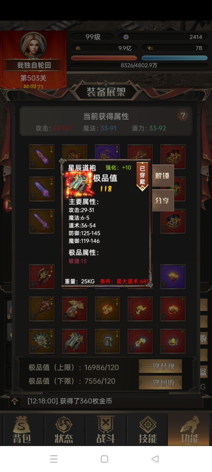 道士应该堆什么?攻击还是道术?战士这个升级真是太难了😔#一把刀无限版 #一把刀无限版经典传奇热血无限