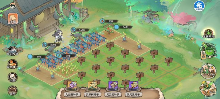 #一方灵田 更新一方灵田后当然是先把地全部开了【图一】,然后可以在任务和部分商店换到想要的种子。时间可以在设置里换成小时,方便查看~虽然种植时间长,可能怕时间太短玩家的怕肝撑不住吧。实在着急还可购买加速莲花,加速年份成长,一朵可以加速100年。建议先种植天宝果,也就是【图三】早拿到仙宝可以提升战力。曲儿褒贬不一,反正我是买了~能增加宗门的灵田收益,但是还是希望能加强点吧~最重要的还可以