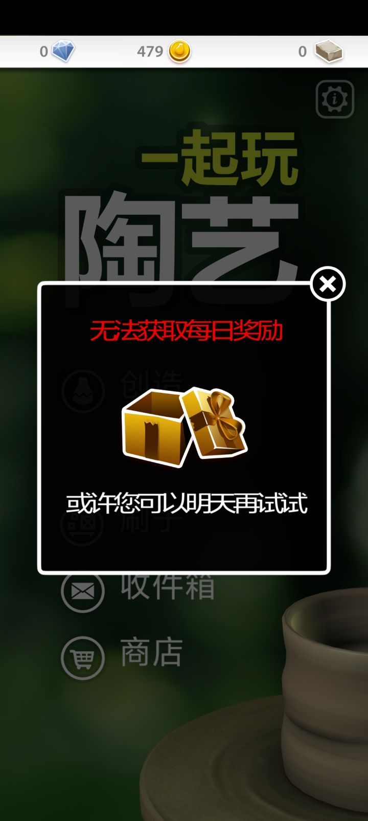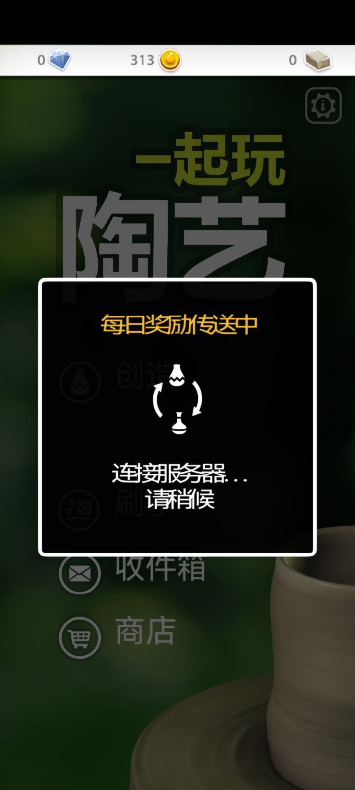#一起玩陶艺 昨天下载的,之后说没有黏土了要等第二天上线拿。今早一打开就是这个画面,到下午了还没转出来。真正意义上的逼氪也是让我见识到了,祝你成功吧,一刀买卖的东西。
