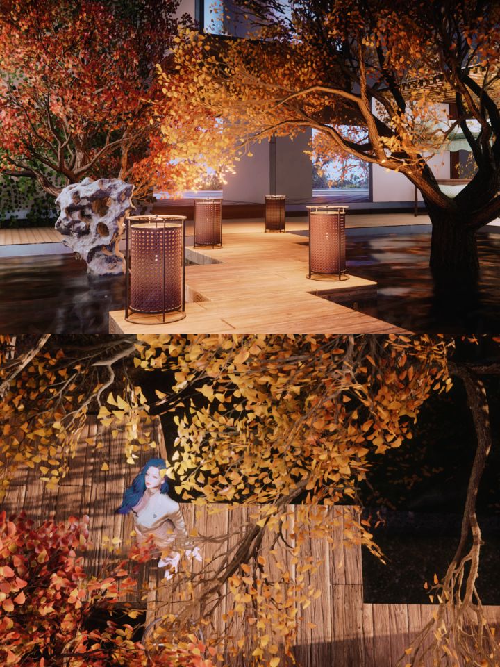 七日世界古风庭院建筑【秋月夜】内饰跑图