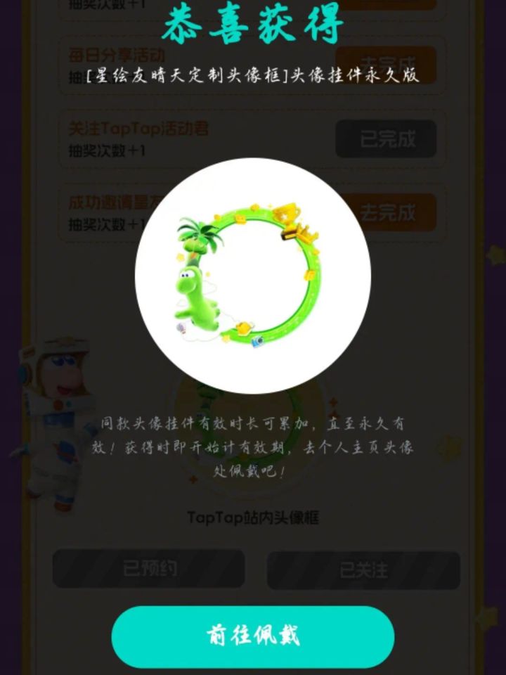 💁🏻♂️「基本概况」 活动时间:2025.12.26-2026.2.25活动链接:https://tap.cn/lFWx1GgrU🪶「其它档案」 头像框时长:永久Tips.这次不需要做太多任务,大家只需预约游戏即可在活动页面下方领取头像框!【多余的积分可以试着去抽奖噢!#世说星语 #发现好游戏 #TapTap头