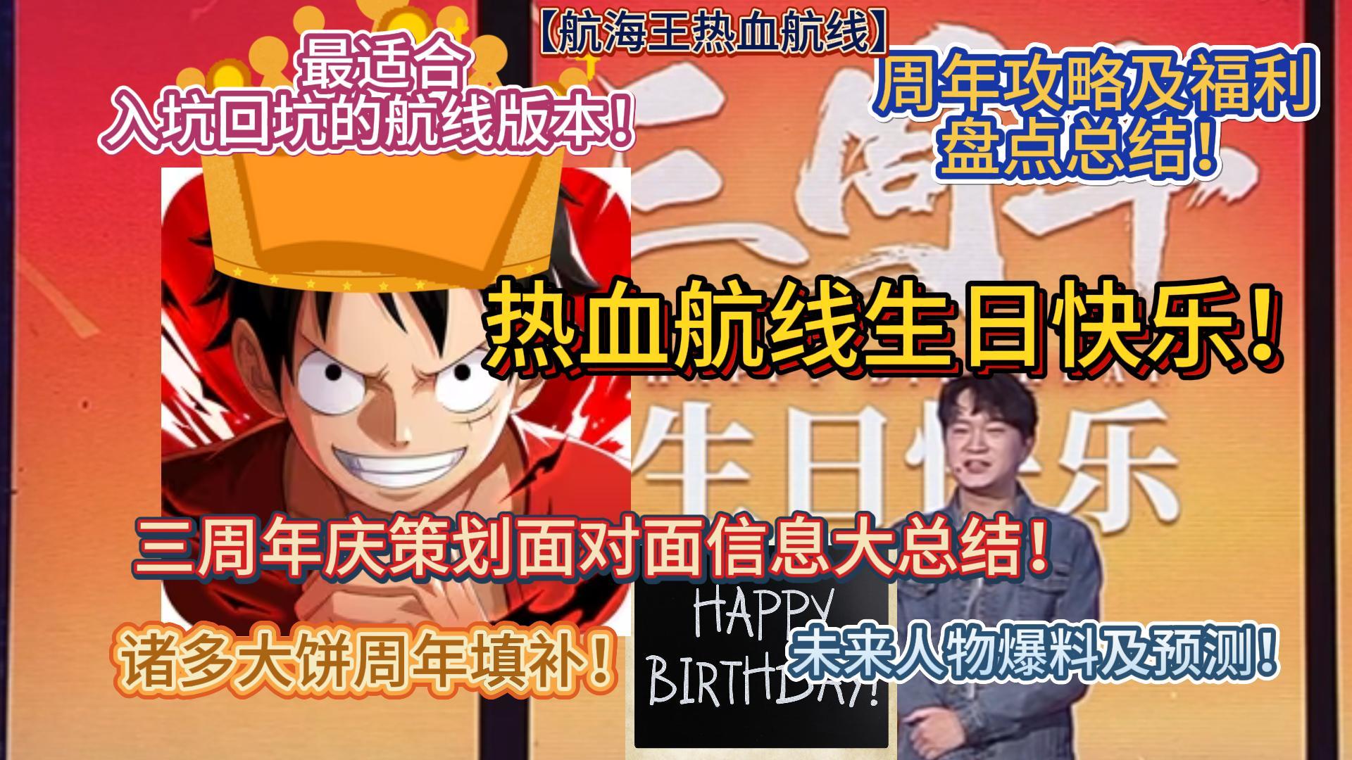 热血航线生日快乐!三周年庆策划面对面信息大总结!最适合入坑回坑的航线版本!周年攻略及福利盘点总结!诸多大饼周年填补!未来人物爆料及预测!【航海王热血航线】#游戏种草计划#游戏推荐#航海王热血航线#三周年#策划面对面#生日快乐