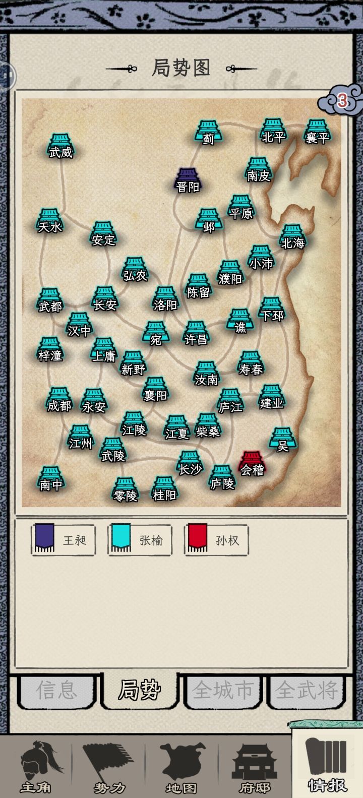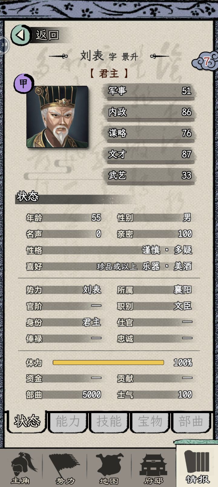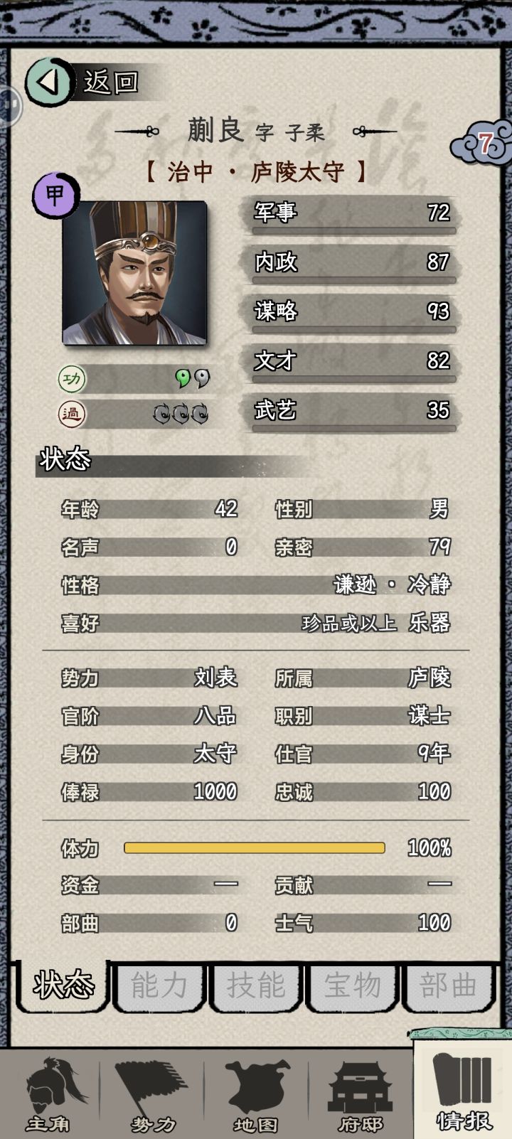 前面有很多老铁发攻略帖,刘备曹操陶谦孙坚袁术等势力都有一定优势和机会,玩了两档刘备,一档曹操,一档孙坚,一档陶谦,几乎都是空守一城或者躺着不动,没玩到太守就无聊死了。后面自己看189刘表周围全是空城,决定试一试,六品官时刘表打下了长沙,我以为机会到了可以当太守了(后来看攻略当太守好像至少要五品),满心欢喜等任命,结果刘表派了八品官苏飞当太守,差点想弃档!!!后来又玩了两年,打下了桂阳,终于派我就任