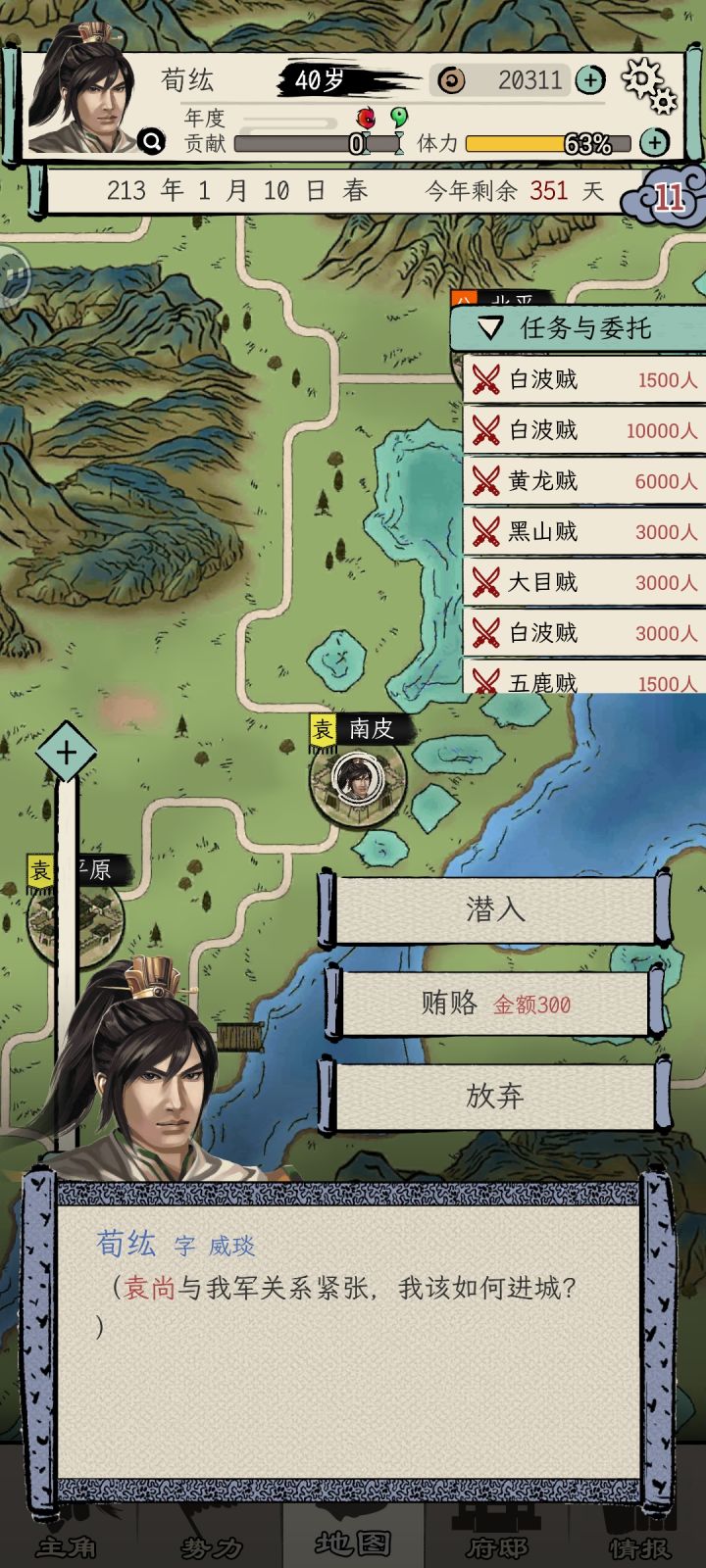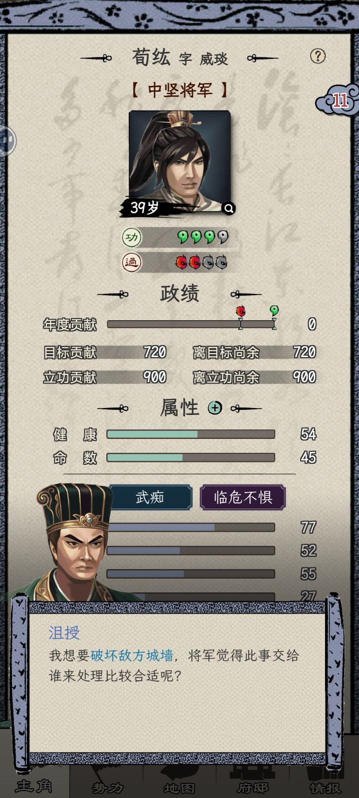 #三国人生模拟 #三国人生模拟器 是bug应该不是机制吧 我在公孙瓒手下当了两年南皮太守 结果兵力不够守不下来 南皮被沮授打回去了 这下好了 年年论功行赏看公孙瓒发奖品给其他人 我在南皮要接个任务还要潜入 完不成任务是沮授给我开的除 公孙瓒你这就把我卖了?!