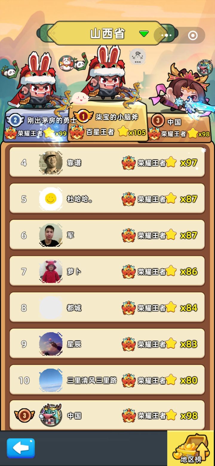 上个月98星,结果第二天赛季结束了。差一点,这次怎么也稳了,赛季结束还有十一天,保守一天5星。争取这个赛季150星,把上赛季的马桶也拿到!!#单机主机作者招募计划#三国吧体验官