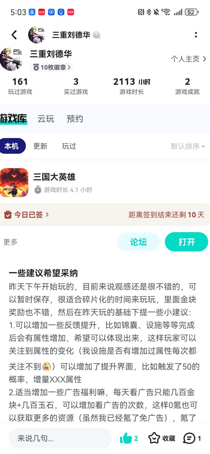 《三国大英雄》是一款横版微操回合RPG。[表情_酷]它不只是传承了经典的三国玩法,武将、装备、宝石、骑宠、战宠、神兵,一样都不少,[表情_+1]更是融入了超酷的微操战斗设定,比如武将技、主将技、骑宠技,[表情_星星眼]让每次战斗都充满刺激和乐趣![表情_看我的][表情_看我的]#游戏种草计划#三国大英雄#攻略#游戏安利#游戏推荐#游戏讨论