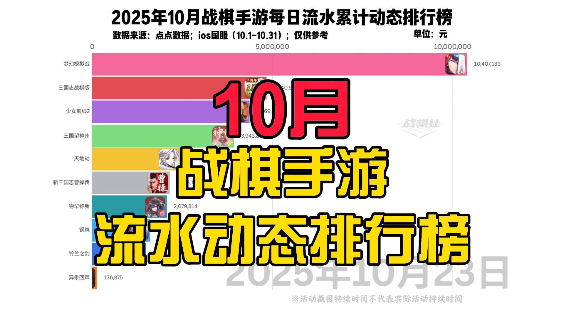 数据来源:点点数据 渠道:IOS国服 周期:10.1-10.31 仅供参考。 #战棋手游 #游戏流水排行 #梦幻模拟战手游 #三国望神州