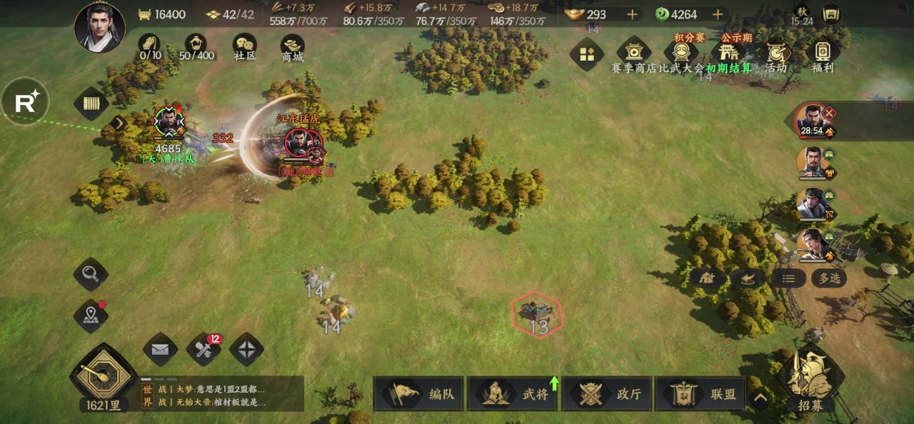 游戏测评:三国群英传策定天下 大家好,我是又菜又爱玩、又馋又爱吃的凌忆茹。三国策定天下这款游戏还在测试中,也玩过很多三国类和策略类的游戏,这个游戏玩起来有些奇怪。 先说优点吧,传统的内城建设和外部资源地的设计,行军不需要恢复士气、打城不需要连接地,这两点是玩家呼声比较高的内容。 建筑和科技都能通过排队来实现挂机也算是降肝了,共鸣系统是有的、兵种方面可以根据需求进行加点,不过武将只能同种类上阵,不可