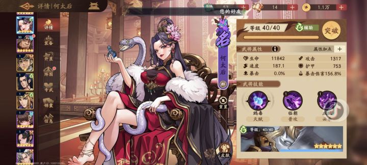 先说配速问题:何太后1-陈宫2-主角3/4-夏侯氏3/4-周瑜5-关羽6解析:双拉条速爆阵容,通过俩个推拉条武将,使我方武将得以在第一回合即可打出爆炸伤害。周瑜的全体必杀可以有效清理前期大家坦度都不高的后排单位,然后配合关羽被动进行收割,到关羽回合再进行对2个单位的斩杀。配置要求:周瑜刚需2命,其他随意专武方面:辅助武将根据站位和技能特性携带以下3个专武给主c得以最大的伤害加成。主