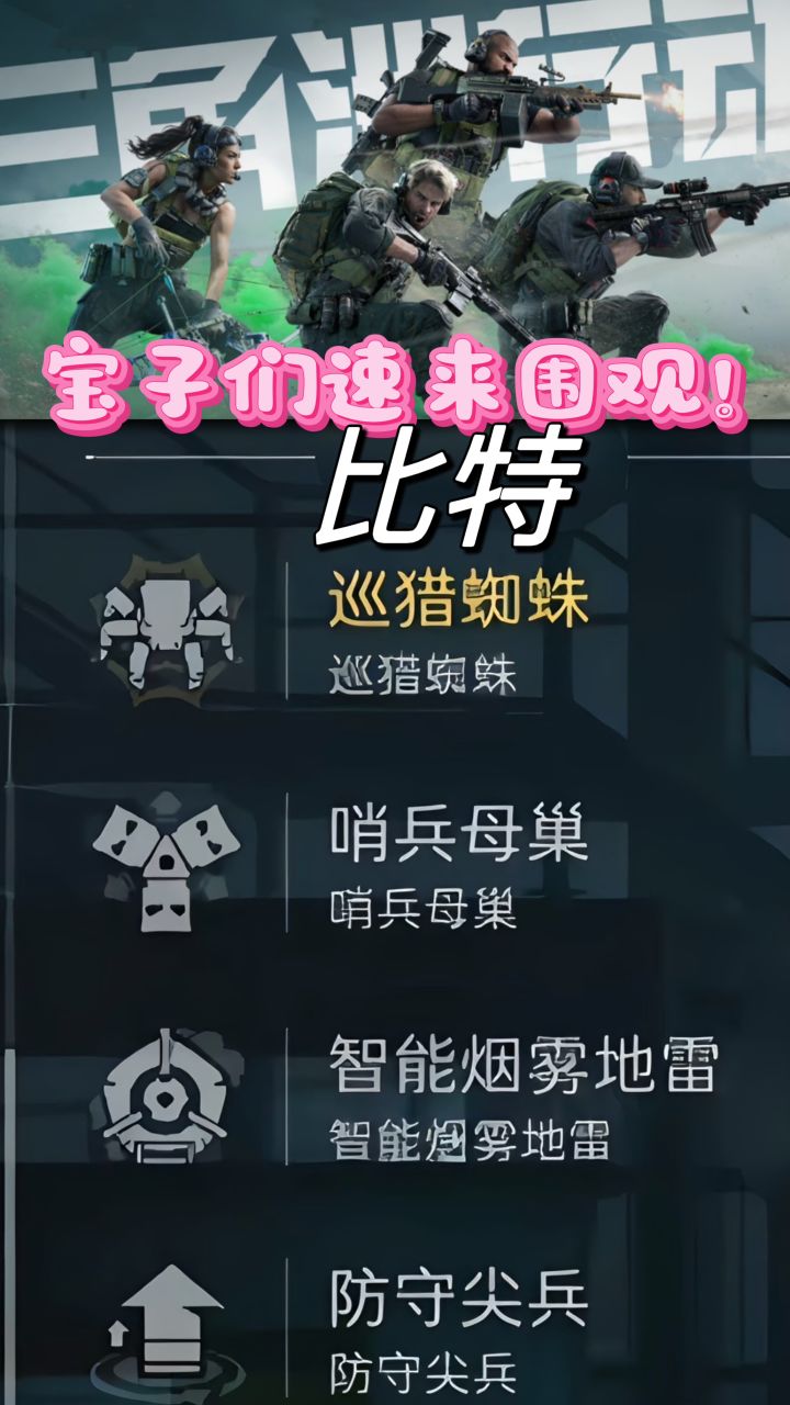 子们,三角洲S7体验服已上线!虽说新内容不算多,妥妥的过渡赛季,但细节里藏着不少巧思,先给大家扒一扒~ 新干员比特是个工程位狠角色!一技能放蜘蛛机器人巡逻抓人,缠上就像中了银翼手雷,还会被追着打;二技能母巢能腐蚀敌人,叠加伤害buff;三技能烟雾减速+标记,被动还能加速开镜。这技能combo玩起来,恍惚以为进了MOBA片场,感觉有点超模哦~ 新道具里,超体针打破了“专属新干员”的猜测,敌我