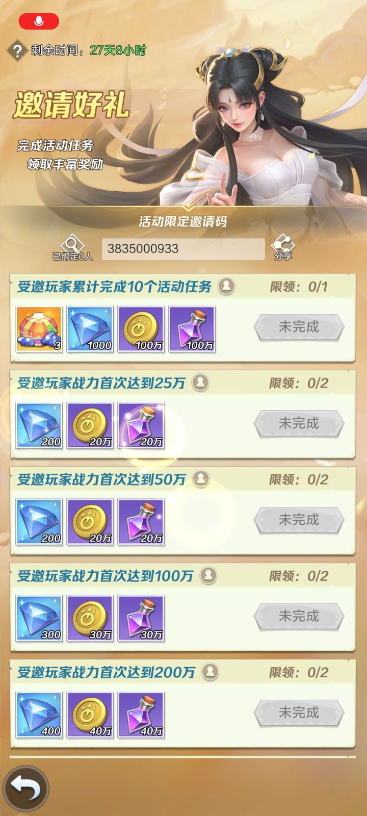 填写邀请码领取十万钻了!