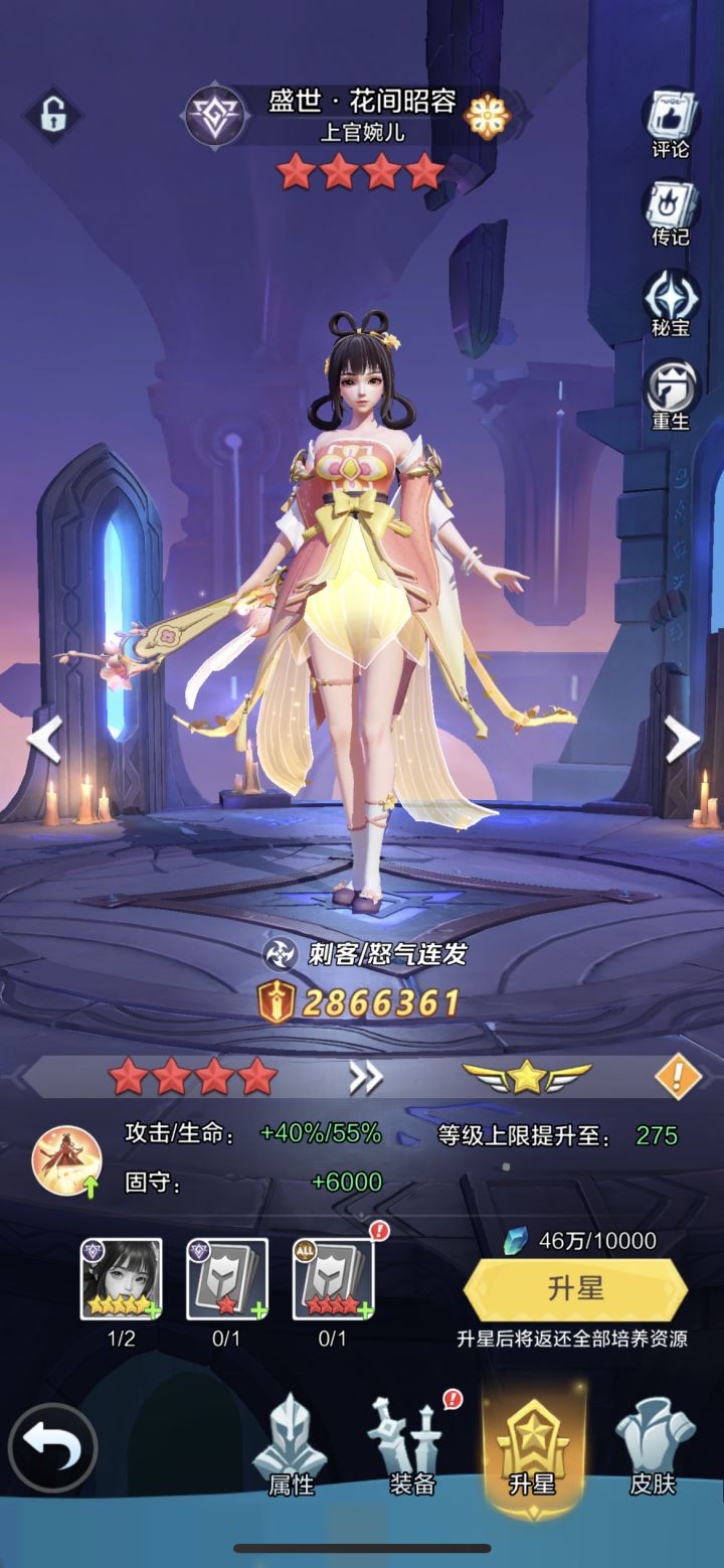 #上官婉儿攻略#16600103733目前盛世系列仅剩最后一名角色,武则天出来后,盛世系列结束。上官婉儿作为功能型刺客,配合神兵,能给队伍带来不错的增益,强化输出,增加前排坦度。使队伍整体强度上了一个台阶。目前主流是四盛世+天启法师,李白的登场基本上算是废了目前所有奶妈,奶妈再次上场估计得出新机制。阵型选十字型,能有3个吃到婉儿的增益,作用最大化。