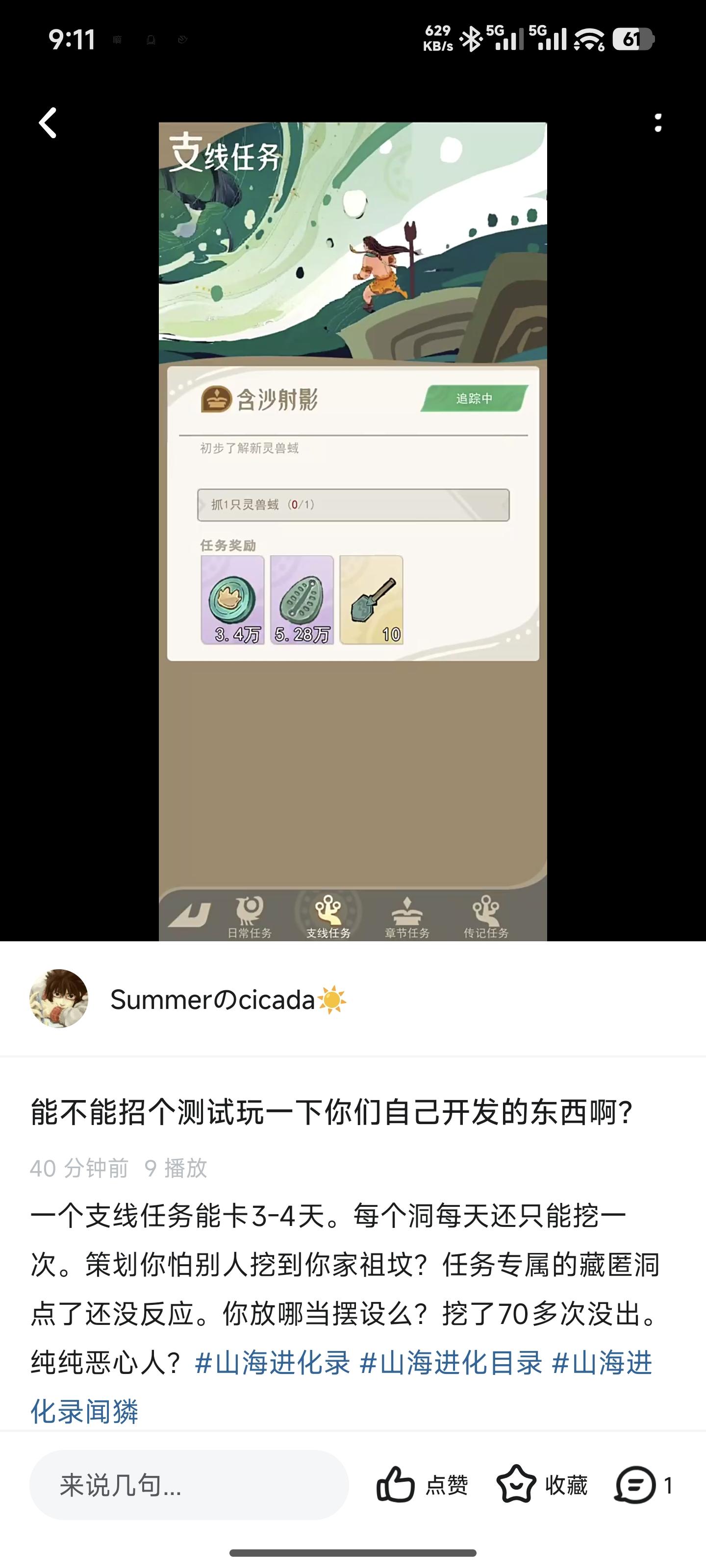 第一次发现一个游戏。会被支线任卡游戏进度。支线任务就是我想做就做。不做就丢失一些剧情。但是不会影响我整体的游戏体验。你这直接影响下一关卡解锁,都成必须做的了。你跟主线有啥区别?我主线都出来了。过不去下一关卡。你的家支线在主线之上?#山海进化录 #上山海进化录 #上山海进化录攻略 #山海进化目录 #山海进化录闻獜