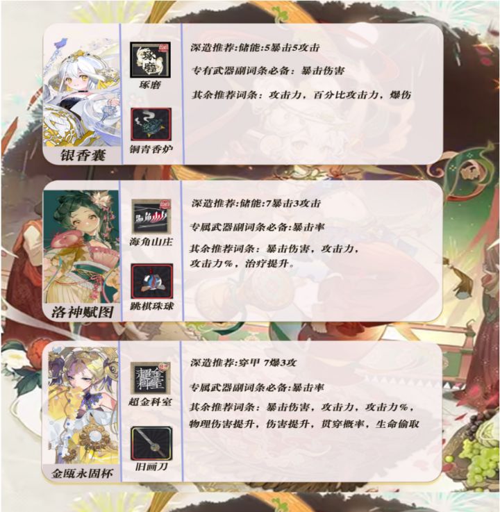 这是目前所有人武器最优搭配喜欢的朋友可以点赞收藏,后续会出更多攻略,不懂的评论我都会回复的 #物华弥新攻略 #物华弥新创作者激励计划 #银香囊 #上阳台帖