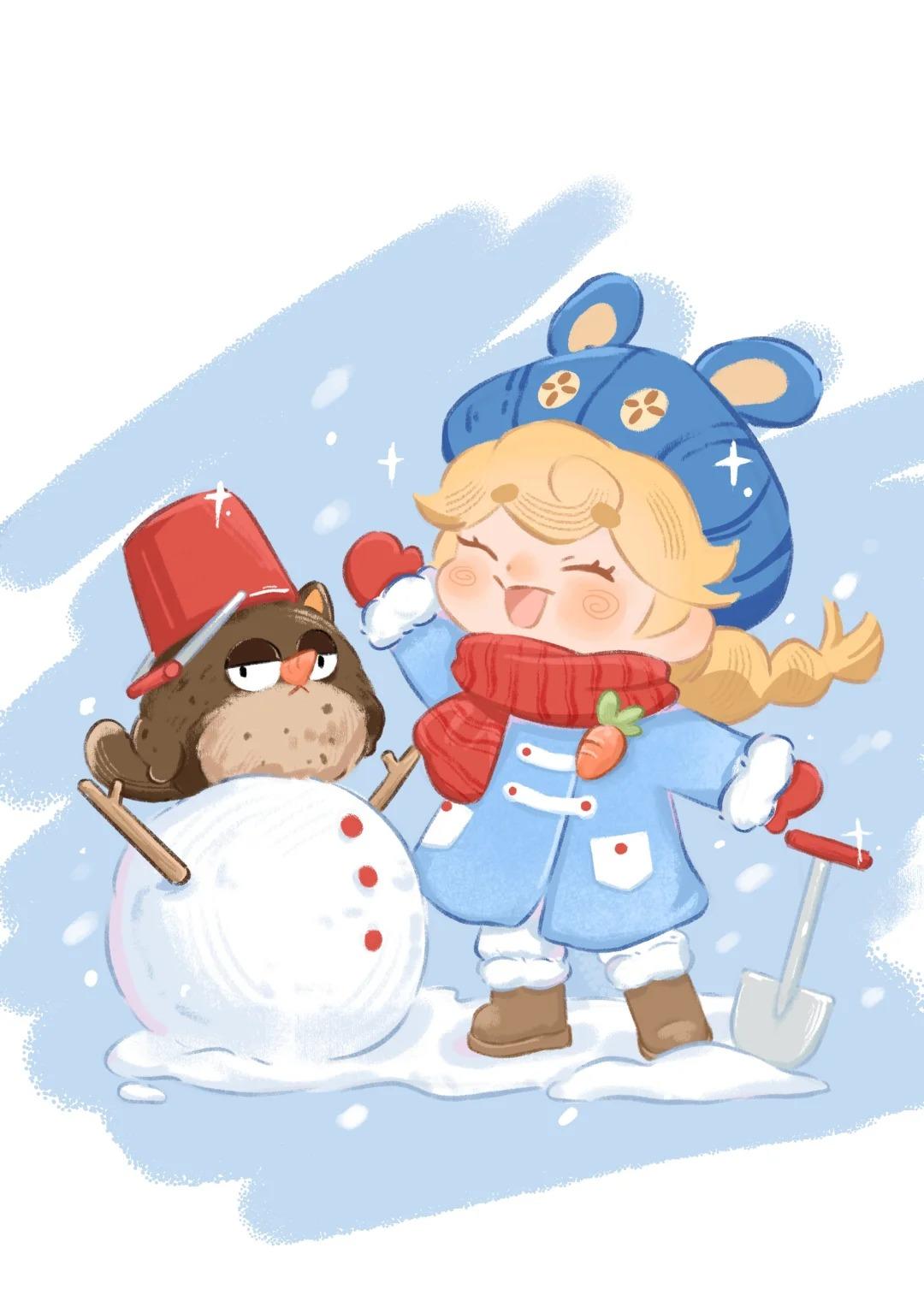 好想玩雪啊!画师小🍠指路p2!#粒粒的小人国 #手绘 #治愈 #可爱 #下雪天