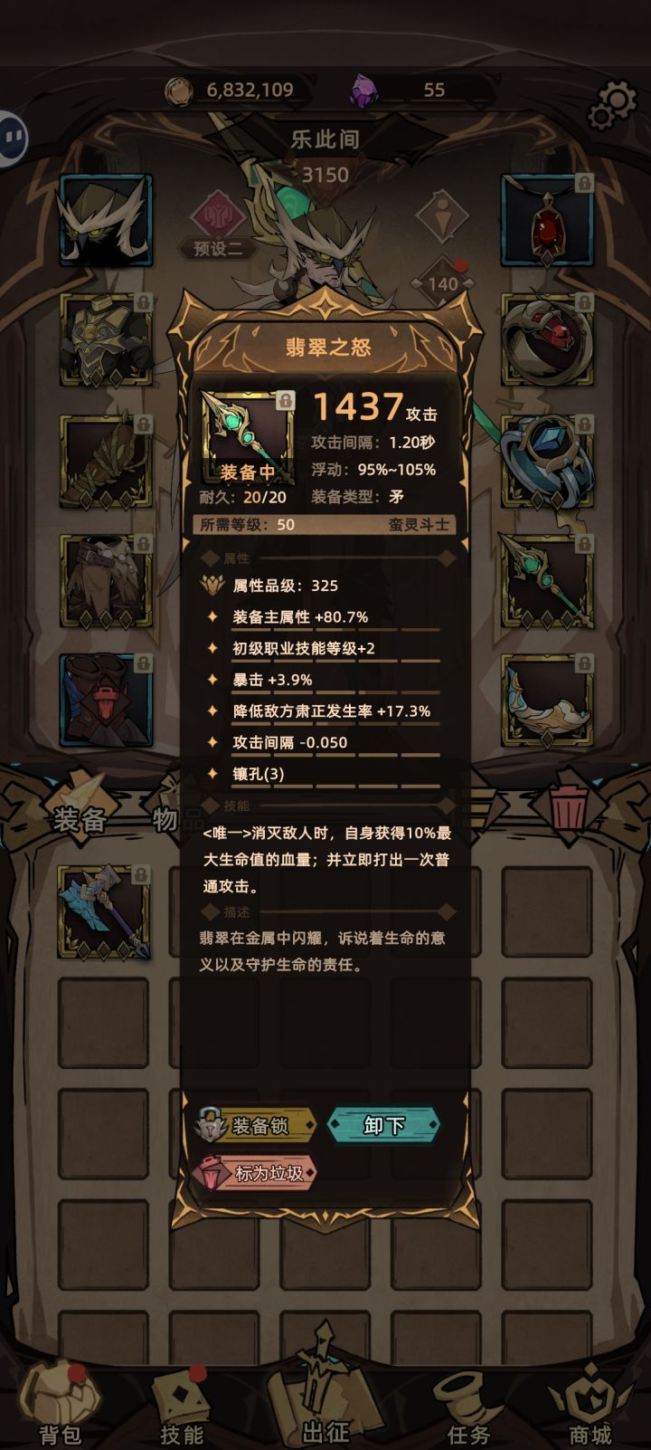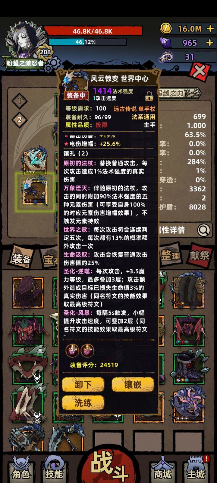 基本挂机就能过,遇到攻击间隔短的敌人,按下技能简简单单。 跟魔心一样,只要有时间能一直打下去。 强力的爬塔职业 #不一样的传说2