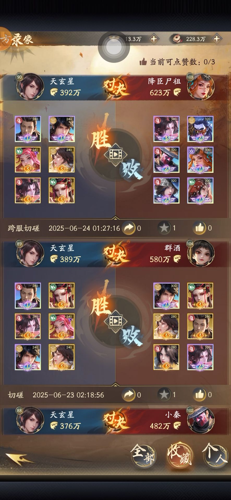 [表情_微笑]打完段位赛翻看记录看见本赛季输的唯一一场,当时我的阵容还不全,现在登封2个也提升了不少,所以切磋了一下,好家伙,直接破了我的越战记录,但是其实很惊险,我的阳叔子可是选的玄武罡气都直接被秒[表情_泪目],好在后面几个队友靠李星云的大盾活了下来,[表情_委屈]本来以为200万已经是极限了,好好休整准备天暗起来打天暗的素材,但是看来我的极限远不在此么🤔,或许这个就是游戏的最大魅力吧[表情_微笑]