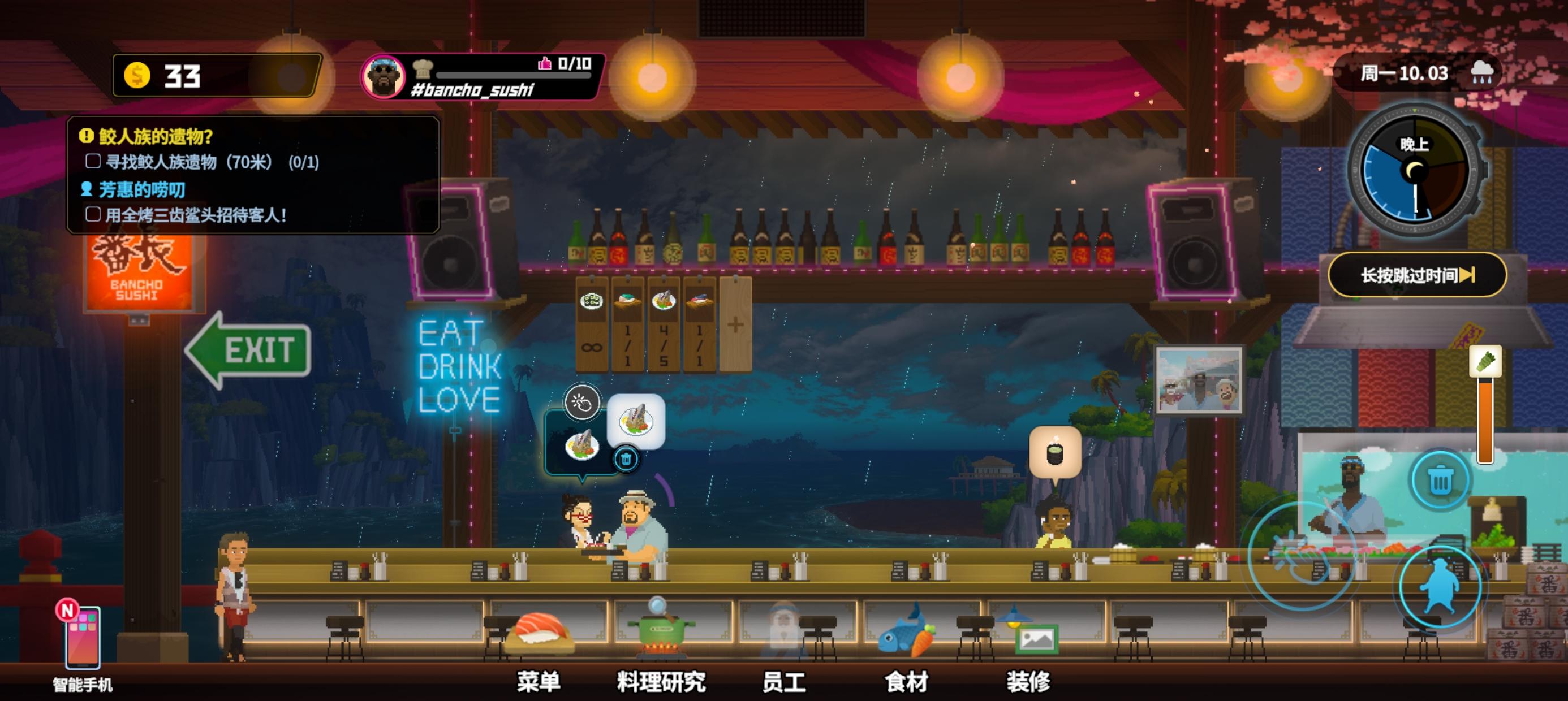 #潜水员戴夫手游 #戴夫的蓝洞记录 #戴夫照进现实 #与班乔厨艺对决 顺利通了,总体的游玩体验还是非常不错的,不知道是不是新增的内容,PC版没注意到的曼波航空(有兑换码喔)hhhh图1是邮件里快速致富的邮件点完的效果,吓了一跳,反诈宣传吗哈哈哈哈,捕鱼的QTE功能对我这种手残太实用了,好评好评,期待正式版的发布吧,继续去玩了