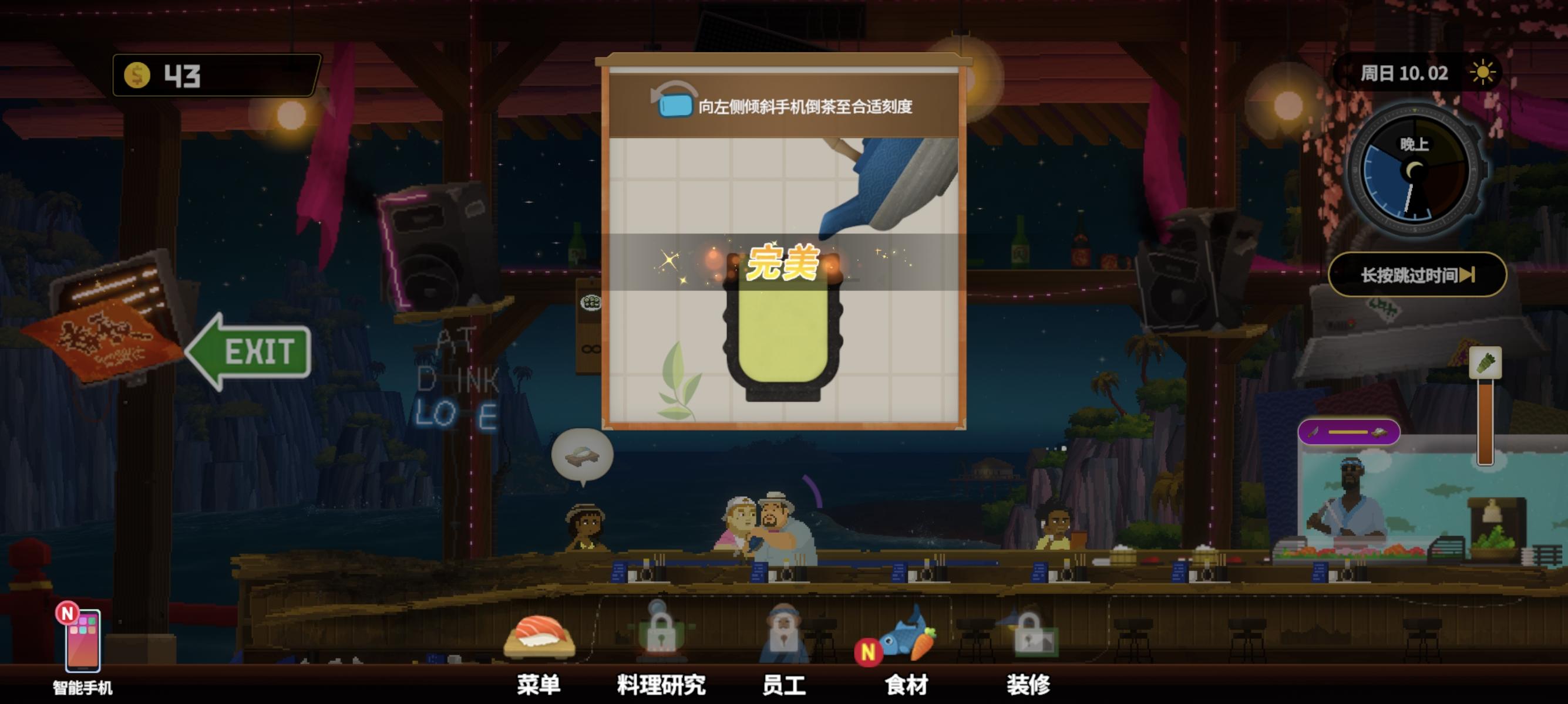 #与班乔厨艺对决 真希望晚上来喝茶的客人来多一些哈哈,通过手机的摇晃来倒茶更是展现了手机版的独特,期待后续正式版上线制作组能给我们带来更多的惊喜!