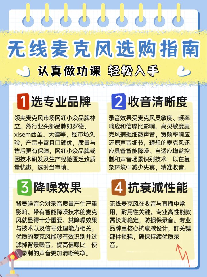 领夹麦克风/领夹麦/麦克风/自媒体/短视频/直播/无线麦克风/收音麦克风/无线领夹麦克风/无线麦/自媒体干货/录制/音频设备/直播麦克风/干货分享/vlog设备家人们!无线领夹麦克风到底应该怎么选啊😫?市场上这么多品牌,价 格也高低不等,真的让人挑花了眼🤔!🙌首先,我们要看音质!毕竟这是麦克风蕞重要的一点。好的音质能让你的声音更加清晰、自然,谁懂啊!😍💰然后,考虑一下价 格。不要盲目追求贵的