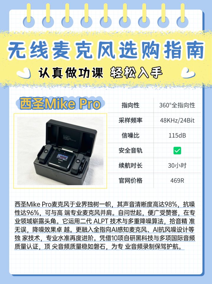 百元内的无线领夹麦克风不少,但是想找一款平价又好用的真的不容易。-我也是花了很多心思,才找到了这么一款:收音清晰、续航持 久、佩戴舒适、关键还方便携带!- 2025年新款的无线领夹麦克风:西圣Mike2领夹麦,小巧轻便不碍事,简约设计,实用性十足👍🏻- 🎤 轻盈材质。我每次拍摄用很久,几乎没有负担感,不影响动作❗- 🔋续航能力很棒,连续使用好几个小时没问题,不用就放回收纳盒,自动充