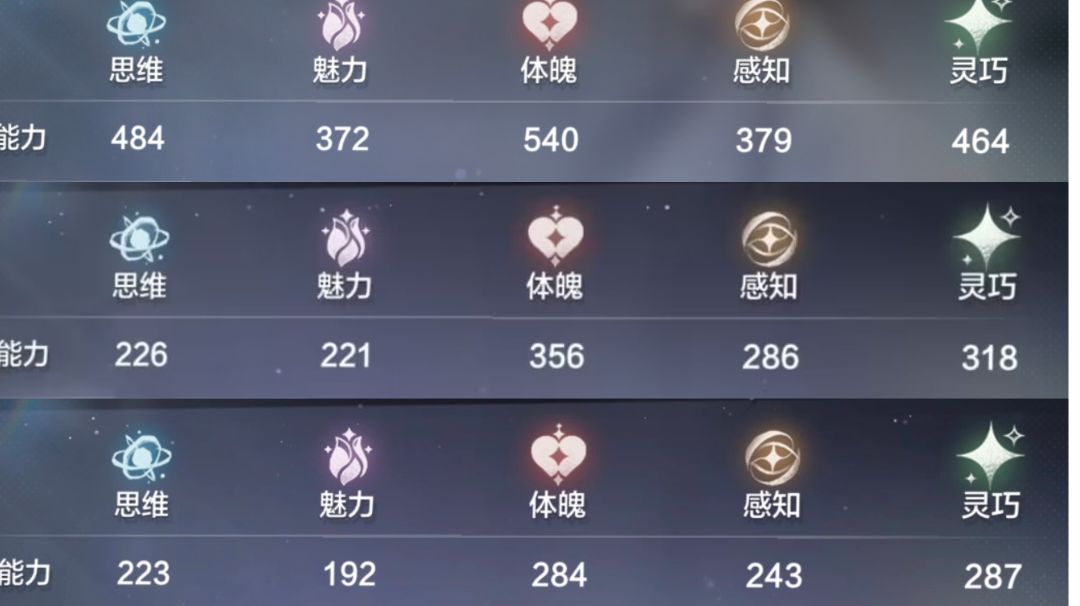我和亲友的属性基础数值像又不像的 都是体魄高,魅力低的 但是我大号思维比感知高,她的感知比思维高诶 已经算累了,有没有50级、33级、28级的姐妹站出来跟我对对数据的呀!#新游安利局#世界之外#世界之外攻略