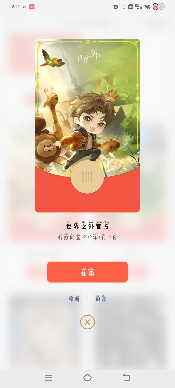 #晒晒我的游戏红包封面 #世界之外 #世界之外红包封面 NU_t20eF3c4NJU先到先得没领到包子也可以在首页直接搜红包封面然后点进去完成两个奶龙的签到任务就可以领取想要的红包封面拉