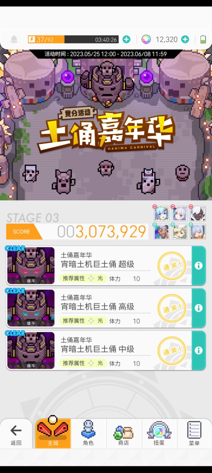本来光队摆烂夸属打了暗土偶的中级和高级,现在组了个光pf重新打了一边暗土偶,打完超级没加分怎么回事#萌新求助#世界弹射物语土偶嘉年华#世界弹射物语