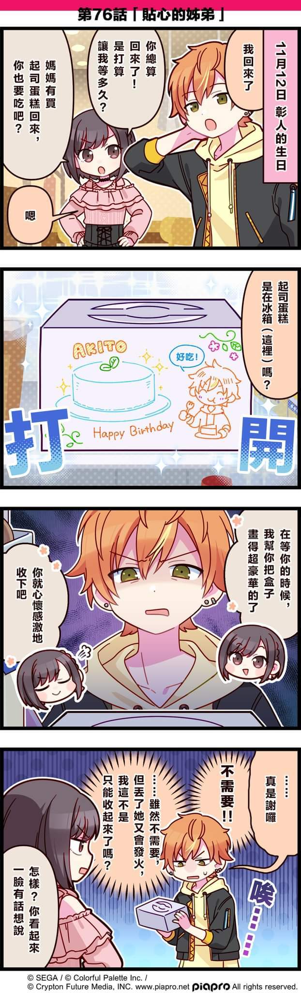 【「世界」劇場 四格漫畫】 尊敬的各位居民: 今天是關於東雲姊弟的小故事~ 同時,今天也是東雲彰人的生日💕 讓我們一起來祝彰人生日快樂吧~ 第76話「貼心的姊弟」#pjsk#世界计划#东云彰人#东云彰人生日快乐