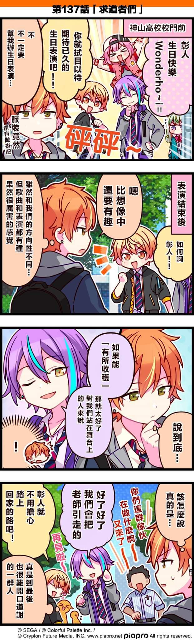 【「世界」劇場 四格漫畫】 尊敬的各位居民:今天11/12是 Vivid BAD SQUAD成員「東雲彰人」的生日!讓我們一起來慶祝東雲彰人的生日吧~來看看關於東雲彰人,天馬司,鳳笑夢,草薙寧寧和神代類的小故事吧~第137話「求道者們」#pjsk #世界计划 #东云彰人 #天马司 #草莓宁宁 #神代类