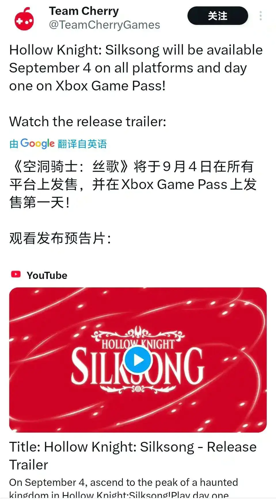 《空洞骑士:丝之歌》 新预告公布:9月4日发售!
