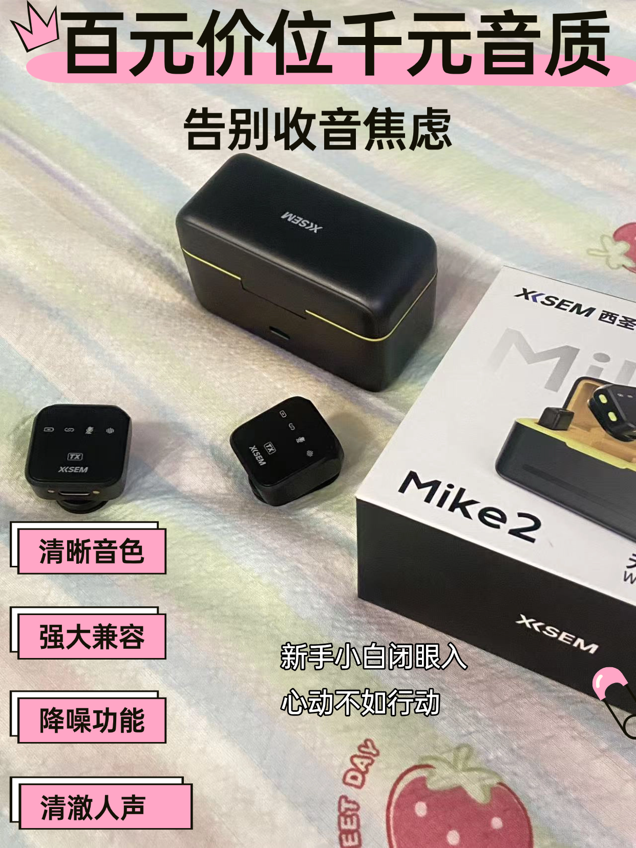 和我一样觉得领夹麦是智商税的宝子,快来打脸!自打入了西圣Mike2,我才知道之前对它的误解有多深——不是领夹麦没用,是没碰到真正好用的! 它的收音效果完全颠覆预期,48kHz/24bit采样率加持,说话声清晰饱满,连细微语气都能精准捕捉。内置的4重PSNE降噪太顶,在商场、街头拍vlog,背景杂音全被滤掉,人声稳稳突出。10克的超轻机身,夹衣领上几乎没感觉。开机自动配对,手机、相机插着就用,新手