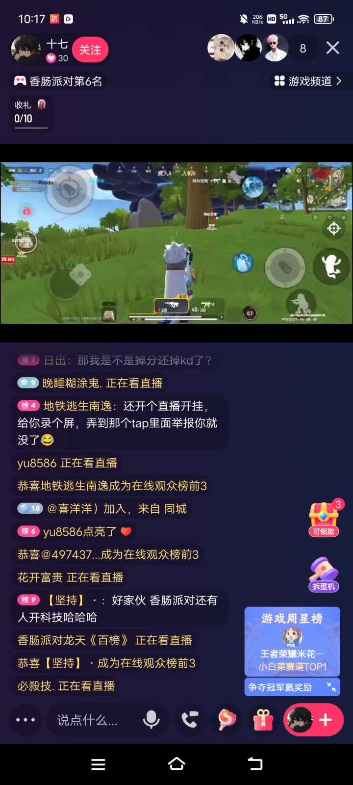 人没看到,先报菜单了,战队留着你过年带大家一起走吗?300场均透天线好用吗?#香肠派对#举报外挂