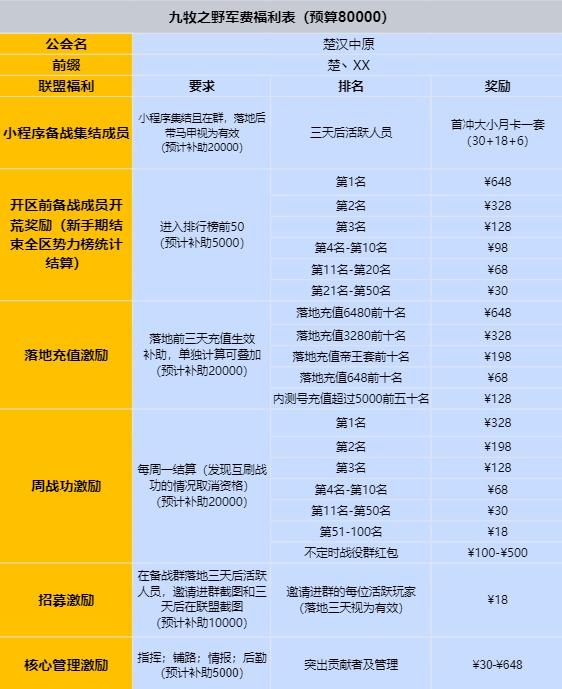 一、比奇堡军费 💙管理:双月卡(每月底) +赛季500块红包 💚成员:每周六晚上八点联盟群看运气抽大小月卡,没抽到的也有首冲+十元红包(公测发备战小程序奖励的1500块拼手气红包)💜注意:有大佬无金主,单纯活跃联盟气氛,主要还是一起玩的开心,社交游戏长期一块组成一个小团体。 二、比奇堡联盟其他福利: ①联盟有配将大佬帮你看号(不是那种抄作业的搬运工,比很多还有理解的配将大佬。 ②大佬没