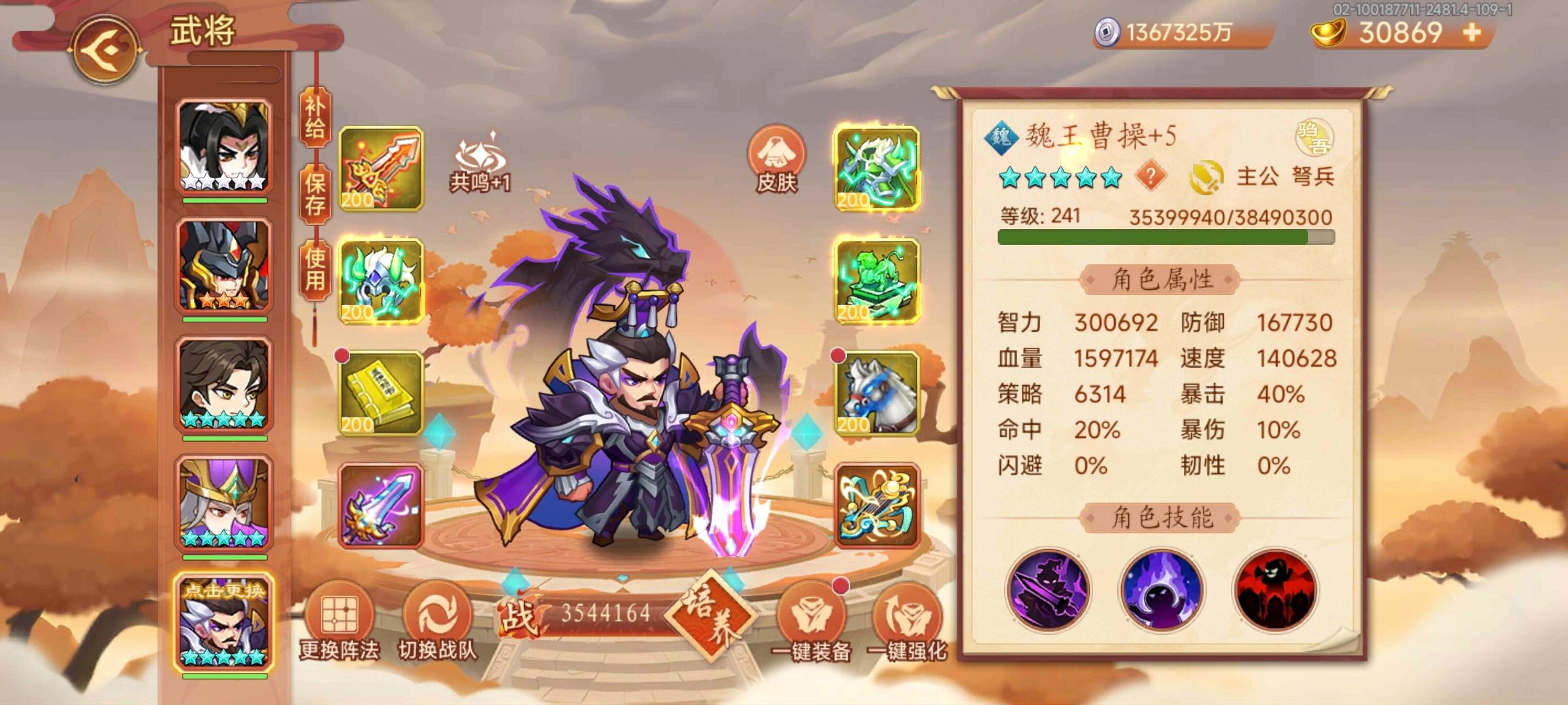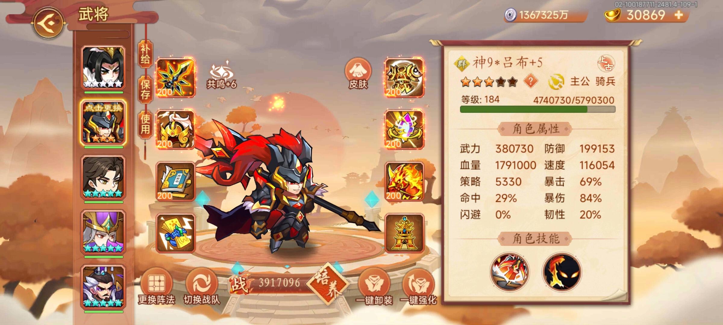 #乱世曹操传 #游戏攻略 #游戏日常 #游戏杂谈 这是第二种方法,配置还是同样的配置。吕布的话,四星,共鸣+6,没出神曹的,可以用卞姬加共呜代替。多刷刷童源的反击。有大招就放大招,没大招就点淹城计,缺点伤害可以吃图补上。