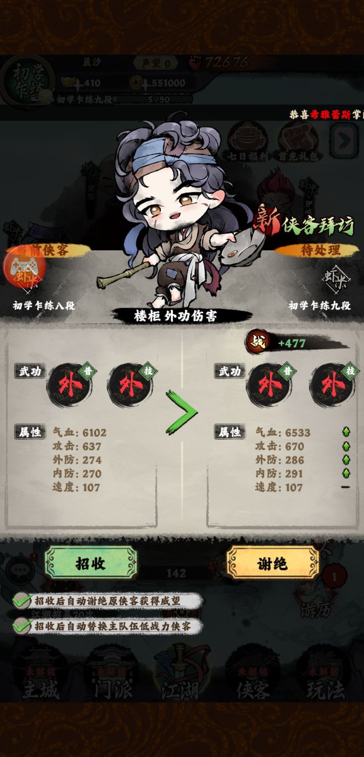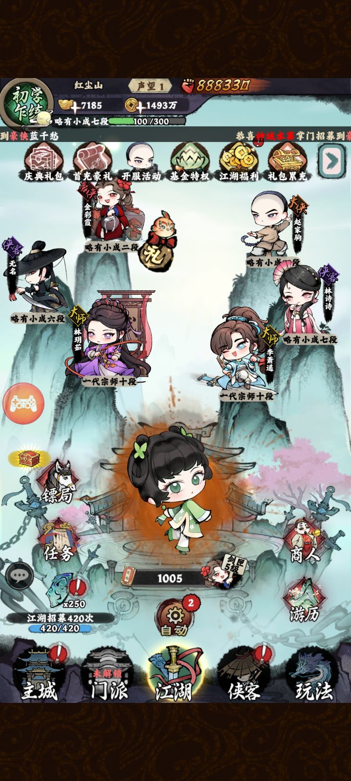 玩了几天发现不充钱好像不会有什么影响,抽卡爆率还行,兑换弟子的方式很多,战力不会很焦虑,但是建筑和装备的升级这块还是听熬时间的现在又出了钓鱼,实在肝不动了,准备慢慢玩了#浅评一下 总体可以,没事摸鱼可以玩,0氪完全没问题,氪点效果更好#乱世江湖