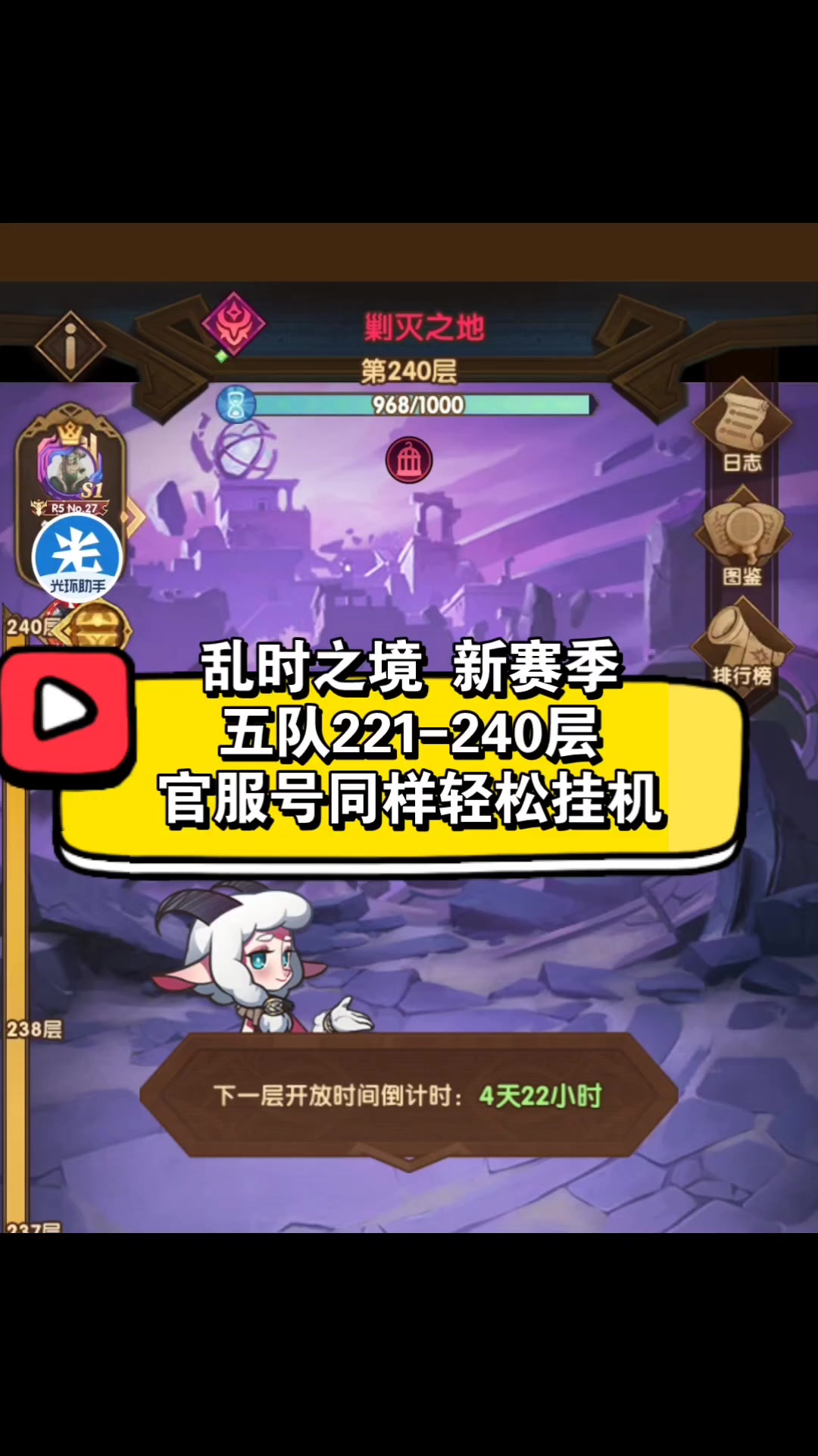 乱时之境 新赛季 官服号五队221-240层 同样轻松挂机