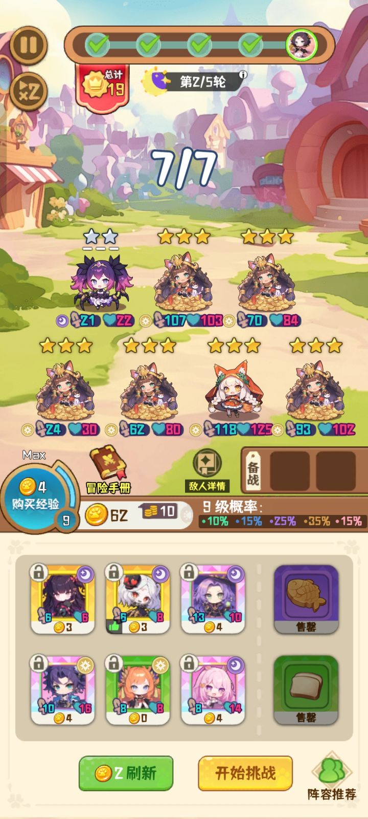 按分享的佩佩阵容攻略,尝试了下,一般3-5轮时可以攒够凑足阵容的金币,稍微极限一点可以3-3。因为群友反馈的一些信息,发觉可以更快成型。以上为2-5轮成型截图。成型快的话,可以不遇到后面属性/技能强的boss,更容易满星通关#二次元萌娘自走棋 #游戏杂谈