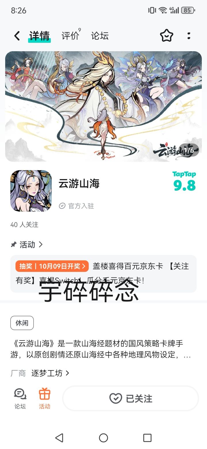 亲爱的仙友们:大家好!感谢无数个日夜的等待与支持,经过团队数百次打磨优化。《云游山海》终于要迎来首次大规模测试啦!我们始终秉持“以玩家为本”的初心,将山海经的奇幻世界与创新玩法深度融合,只为带给大家沉浸式的东方神话冒险体验。为此,我们也是特为大家准备了一份精美福利,50元京东卡一份!【参与方式】本帖盖楼:云游山海,即可参与抽奖【活动奖励】50元京东卡*1【活动时间】回帖时间:即